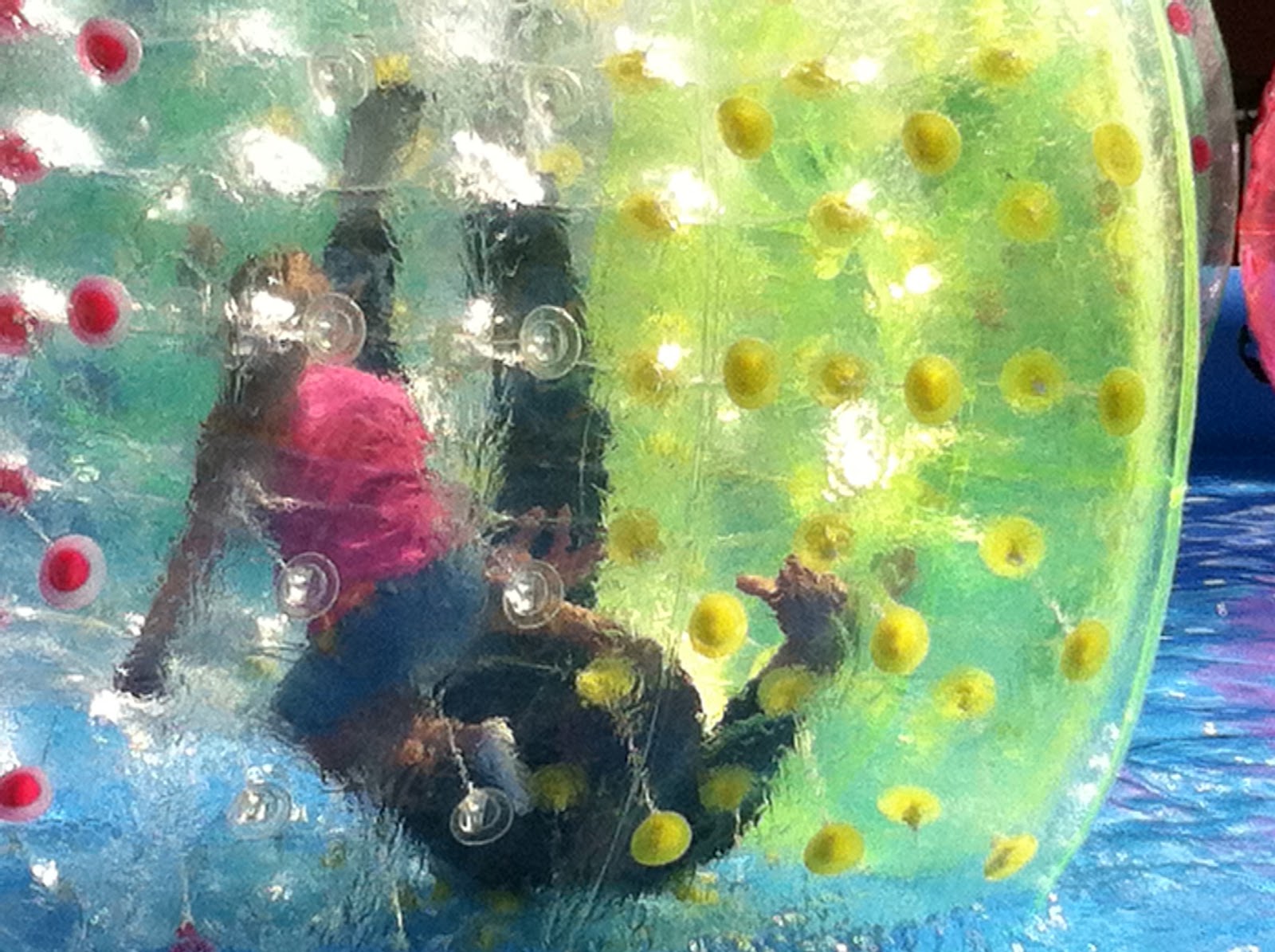 They had these big inflatable roll things that floated on water. Robert went with her and they had the best time spinning it and doing flips and somersaults in there.